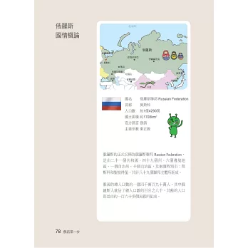 常常有人說,俄語很難、不好學,所以連試都沒試就轉身離開,白白失去許多機會。事實上,他們只是沒有碰上一本解釋詳盡又平易清楚的俄語學習書!作者憑藉著自己豐富的翻譯經歷與學習經驗,發現了能讓俄語更快上手的方法,從而編撰了這本俄語學習教材。除了文法規則講解條理分明外,還補充了許多關於獨特又迷人的俄羅斯文化小知識,讓你在學習俄文的路上,語言文化同步到位,連當地的俄羅斯人都會對你刮目相看!