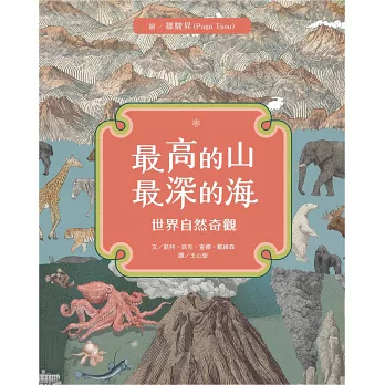 國際知名的臺灣新生代插畫家鄒駿昇,與設計感強烈的英國知名繪本出版社Templar Company合作,以細膩、古典的畫風,以及充滿創意的版面設計,帶我們暢遊世界各個角落,探訪各式各樣的「世界之最」。鄒駿昇畢業於英國皇家藝術學院視覺傳達藝術系研究所,他在英國求學過程中就入選了十多項國際插畫獎項,也收到來自各國的合約邀約,國際性的合作造就了他多類型的創作,他喜歡古老的東西,不僅喜歡水墨畫和老舊古樸的事物也接受西方藝術思潮,新舊交替中蘊藏了歐風的設計美學,這本《最高的山,最深的海》也選用了仿古的繪圖風格,希望知識性的內容之外也能有美學的欣賞,用雅緻的色調來配上淡淡的黃色斑點,精心繪製與構圖讓每一頁都是視覺饗宴。讀者可以仔細瞧瞧每頁的黃色斑點這也是繪者精心的設計與巧思喔!