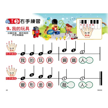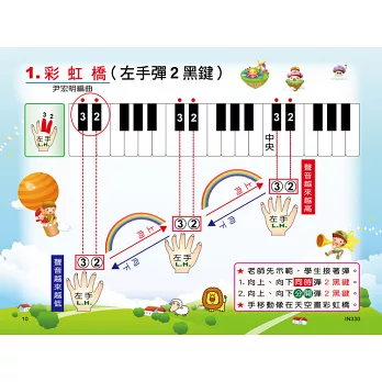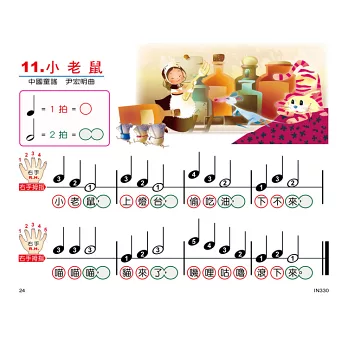 此本先修版,作者為了吸引更低齡層的幼童,教材先從手指遊戲帶入,後編排許多手指練習、音樂遊戲,從中又加入許多可愛插圖,使初學幼童輕鬆學習,於歡樂中奠定基礎。