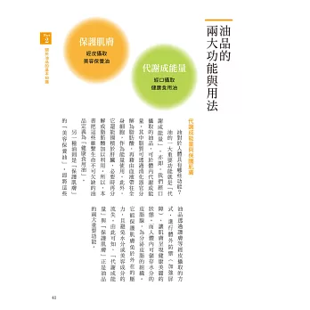 ★教你如何挑選出能改變你的「命運之油」,且提供油品保存與使用技巧。