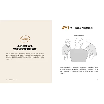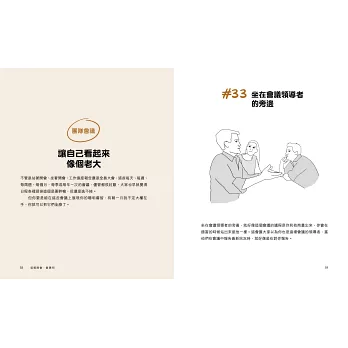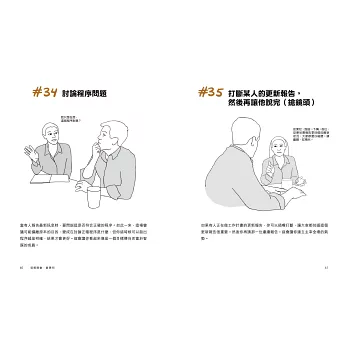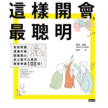 曾在Yahoo!以及Google等矽谷大公司工作過的作者莎拉.古柏(Sarah Cooper),將各種開會技巧整理成專書《這樣開會,最聰明!》,傳授各種實際可用的方法,每個技巧都有完整的說明提示與示範插圖,只要善加利用書中的妙招,就能在會議上顯得你比別人高明!書中涵蓋了各種類型的會議,從一進場就難以集中注意力的全員大會,到令你恍神的一對一會議,還有你必須痛苦撐到最後一分鐘的即席會議,是所有會議苦手的必備聖經!