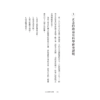 我非常高興陳德中能寫成這本書,引進了正念及其潛在力量。若按照他闡述的種種方法來練習,將能幫助我們減少壓力,活得更健康,並擁有更令人滿足,也更有意義的人生。——喬‧卡巴金(正念減壓創始人)