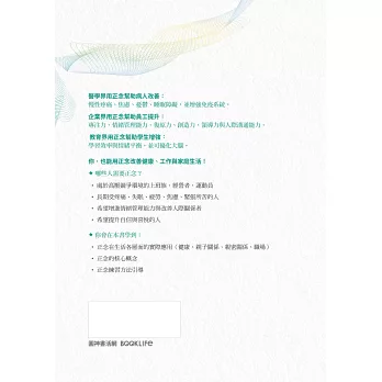 ‧正念在生活各層面的實際應用(健康、親子關係、親密關係、職場)