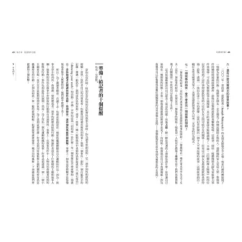 「……本書集結多名新聞記者的經驗談,不厭其煩地交待自己的心得與做法。這樣的內容讓老記者看起來,像是再一次體會新聞工作無國界的特質。而對年輕記者來說,更可以減少嘗試錯誤的時間。」──林照真,台灣大學新聞研究所教授