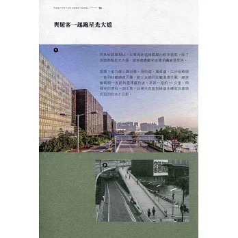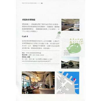 除了跑和美食及趣趣遊覽點外,我還發現這書的一大優點-就是把我平時亂逛亂行的街道連繫起來。説實話,我是個成日周街逛的人,彷彿遊蕩似的,為的是在每次採訪故事或人物以後,不會錯過被訪者提及的小街小巷文化,卻沒料到作者拾拾重新把我看到的小街小店,用街跑連繋起來,好像我從沒想過在深水埗街跑吧?人超多,路超短,無起點無終點……但拾拾在這兒卻跑上10-15公里,還有更衣室儲物櫃,跑後游走饒宗頤文化館、活化舊工廈的創意產業D2 Place,還有點心仍保留大大個大包的中央飯店。