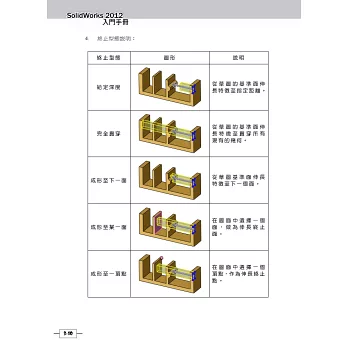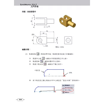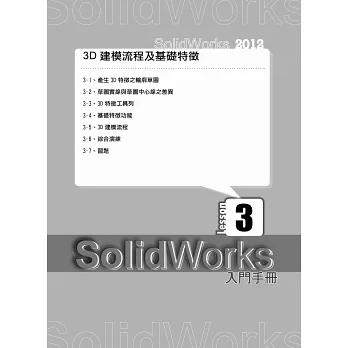 此書是針對第一次接觸到3D CAD軟體的入門使用者而撰寫,包含學生或工程師。書中的內容為筆者平常在介紹SolidWorks時所用的參考範例。由於是針對入門者,因此內容務求簡單詳細,每一個步驟都清楚的列出來。只要讀者按照步驟實際演練,一定可以將範例繪製出來。