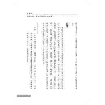醋還有許多大家耳熟能詳的保健功用,像是消除疲勞、防治糖尿病、防治脂肪肝等,都將在本書中加以介紹。此外,本書有專章介紹各式各樣兼具保健養生功效的醋,還有各種美味的醋飲料的製作方式。