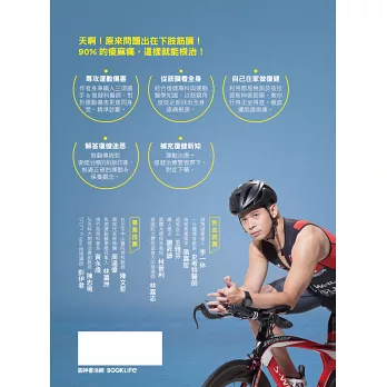 ◆專攻運動傷害:作者身兼226K超級鐵人三項選手&復健科醫師,對於運動傷害更能感同身受、精準診斷。