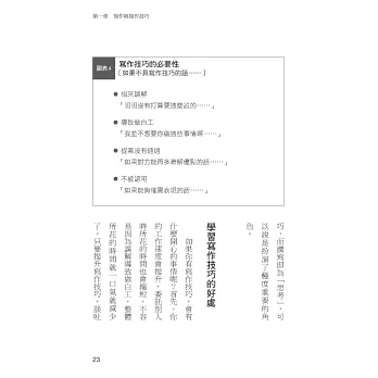 一般教寫作的書籍只會教讀者注重修辭,就像教讀者要怎麼切菜、殺魚一樣;這本書要說的是寫作的「流程」。