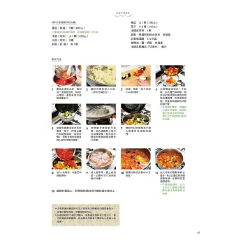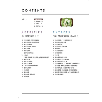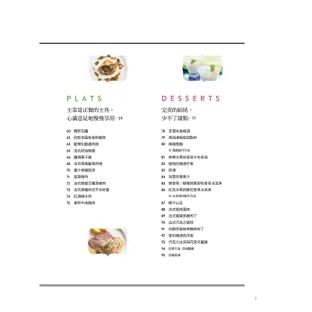 基本上,法國料理由前菜、主菜和甜點三道佳餚組成。在家享用法國料理也是一樣的。本書如同正統法國料理,由餐前酒開始,然後依序擺上三道佳餚。但大家也可以稍微改變一下,任何一道菜餚都可以製作大分量,成為派對料理中的一品;也可以不分順序同時上桌,讓大家像自助式美食般取用。各位讀者可以視情況自行搭配組合。