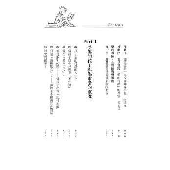 一直以來,我認識的志恆老師,是個充滿愛的人,他對親職教育的熱情,對孩子成長的積極參與,都很讓人感動。志恆老師幫助了迷惘的孩子,以及許多憂心不已的家長,他在本書寫下許多動人的故事,累積出一套協助孩子與家庭的思維和態度,非常適合家長和助人工作者。推薦給大人們閱讀,這本書,能讓我們獲得更圓滿的親子關係。——吳姵瑩(諮商心理師、愛心理iSpace創辦人)
