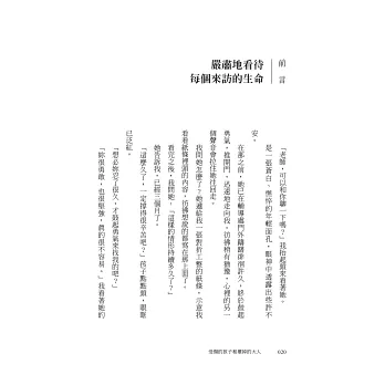 作者希望這本書能幫助許多受了傷的孩子,以及那些與孩子互動最緊密的大人——父母師長、親戚長輩……讓大人練習陪伴、和孩子建立起穩定的情感連結:關懷、尊重、支持與肯定,這將使孩子逐漸看到自己的價值,知道自己值得被重視與被愛,並且被允許活出屬於自己的姿態。