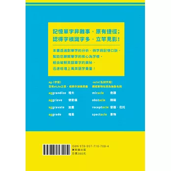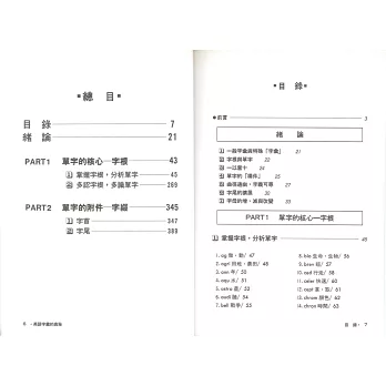 本書旨在幫助學習者瞭解英語單字的內在規律,透過對單字的分析,闡明單字的核心為字根。學習者只要破解一個字根密碼,便能快速記憶一群單字。經由揭示英語單字的奧秘,讓記憶英語單字變得更有效率與樂趣。