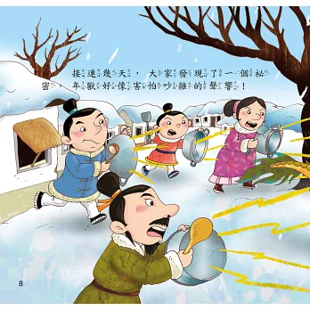 本書以中國年節的由來、習俗為故事的本體,讓孩子認識節日的緣由和演變,傳說老祖先是因為躲過「年」獸的攻擊,慶幸平安留住性命而互相道賀,因而傳承「過年」的習俗,迎接一年的開始。