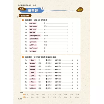 這本書《我的專屬德語家教課:中級》花了一年多的時間完成,目的在延續《我的專屬德語家教課:初級》學習過的字彙和句型,並且將難度從A1.1等級大躍進延伸至A2等級。書中除了複習德語發音和語法原則,並介紹新的文法規則,加深加廣聽、說、讀、寫、譯的基礎語言能力的練習。