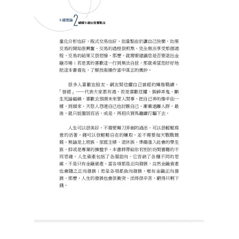 透過本書的整理,投資人從選股、佈局到指標買賣,可以系統性的累積台股實戰經驗。最重要的是,培養出有紀律的行為準則,創造屬於投資人自己的操作人生,達到如蝴蝶般可以自由自在,翱翔於天地之間的投資境界。