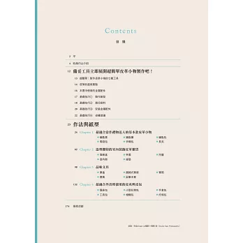 想要妝點家中擺飾,其實可以十分簡單!書中介紹的所有作品,全都「不需要縫」,只靠皮繩滾邊和固定釦就可以完成。簡單的敲打、輕鬆地繞上皮繩、容易到不行的組裝……就算是完全沒有摸過皮革的超級新手也不必害怕,快樂享受初次的手作時光。