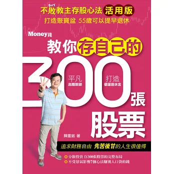 「說完了我的故事,現在要請各位讀者來當一下主角,請你也努力存自己的300張股票。」成功的經驗值得學習,陳重銘連續出版2本財經暢銷著作:《6年存到300張股票》、《每年多存300張股票》,分享他個人20年來辛勤投資股票的心得。這一次,他要教投資人如何打造自己的退休金聚寶盆。