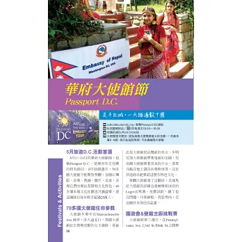 3月潮汐湖畔的國家櫻花節,5月上萬輛哈雷機車出動的國殤日大遊行,7月鑼鼓喧天的國慶日大遊行,9月的國家圖書節,以及年底的萬聖節、感恩節、國家聖誕樹點燈、國會山莊跨年煙火秀等,華府活動好多好好玩,充滿多元魅力!