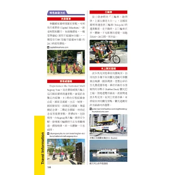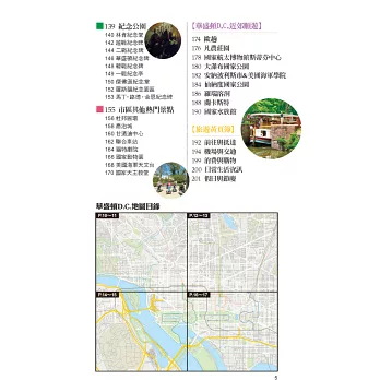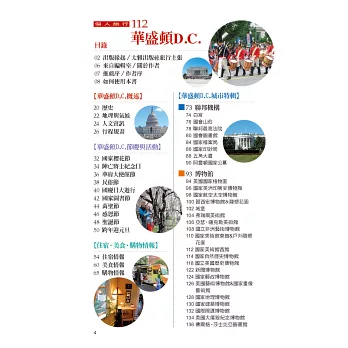 7條路線,包含「國會山莊區」、「紀念公園區」、「博物館區」、「城中區東部」、「親子一日遊」、「自駕一日遊A、B」的單日行程,以及擴及紐約、波士頓的「美東旅遊團」介紹,都是幫助你安排行程的好幫手。