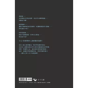 這本書得以出版,顯示我們的生活環境依然充斥著沒道理的說法和種種科學的誤解、迷思。科學新聞解剖室不惜得罪一卡車人,也要抵禦這些錯誤。──朱家安