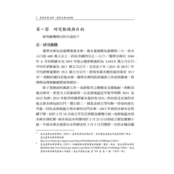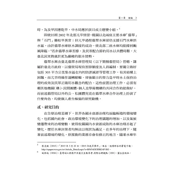 全球水資源正面臨不足困窘,水資源已成為國際組織絞盡腦汁欲解決的全球議題。觀諸世界各國雖投入無數資源,以解決水資源問題,水資源問題仍無法有效解決,並列入全球五大風險議題之一。國內水資源正面臨開發困窘,蓋臺灣的水資源政策推動多年,早期主要以水庫興建為主,近些年來相關部門雖戮力於其他水資源開發,仍無法改變國內主要水資源來源係水庫蓄水的事實。