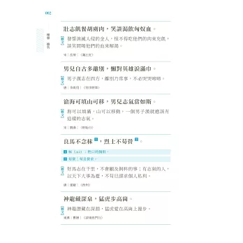 這麼說來,《中國古代韻文名句類編》把精選的1400多條韻文名句按內容分為22個大類,164個小類,確實是了不起的。沒有對中國古代文化、中國古代文學包羅萬象的內容有深入系統的瞭解和體察,要想作出合理的分類,只能是庸人治絲,愈理愈亂。雖然古代的類書,現代的各種分類辭書可以參考。但周奉真先生的分類有自己的特點,他作為主體,宏觀統攝古代韻文名句:這1400多條名句,都是任他驅遣的對象,都是表達他的思想情感的囊中之物,都是他眼中的天地山川、四時風光、草木花卉、鳥獸蟲魚;通過這些名言警句,表達他的理想和抱負,抒發他愛國憂民的情懷,書寫他對政治興亡、社會發展、自然物理、人生價值的看法,展示他對崇髙的人生修養和高貴品質的追求……