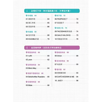 1.必吃美食 排隊餐廳、外帶小吃、特色咖啡、夢幻甜點,吃得滿足!