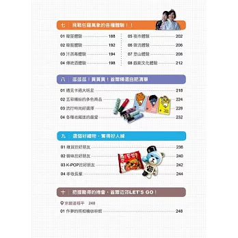 本書分為10個單元,內容包羅萬象,不論是好吃的、好玩的、好逛的、好買的都介紹得淋漓盡致,就是要讓你即刻起程,加入首爾癡的行列。