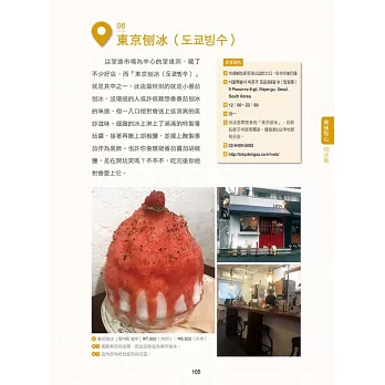 本書介紹的景點、店家皆附上詳實資訊,包括地鐵幾號線哪一站下車、徒步幾分鐘、推薦菜單、中英文是否能通……等,免去讓你膽怯、止步的種種考量,看到喜歡的點就衝吧!