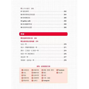 本書貼心附贈韓中對照的首爾地鐵路線圖以及全書景點分區地圖。除此之外,作者還將景點一一標記在網路地圖上,掃一掃本書QR Code,不用再怕迷路囉!