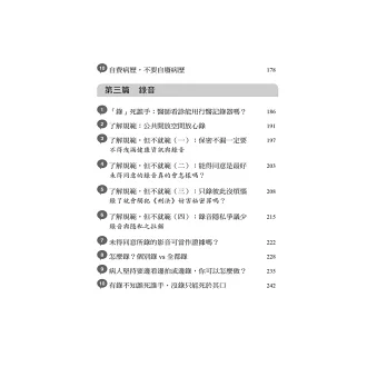 書中分享的方法,絕對不是要醫師「諜對諜」去對抗病患,或是採取「以告止告」的模式,讓自己在訴訟中疲於奔命,而是要以「止戰而不懼戰,備戰而不求戰」的態度,確實做好防範未然的準備動作,因為──