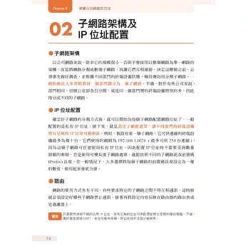 本書專為有心從事 IT 工作的新鮮人、MIS 網管人員、想知道網路技術如何落實到實務工作的自學者所撰寫。一般人覺得網路難懂的原因是網路內部無法直接窺見或是親手碰觸到, 只能停留在想像的境界, 因此本書每個主題都精心設計滿滿一整頁的圖解輔助說明。同時期待各位讀者在閱讀本書時, 能一邊思考如何能將書中提到的每個知識運用在周遭環境, 或是實際去體驗一下書裡所提到的設備, 將實物與理論互相印證, 一定能加速對網路的瞭解!