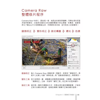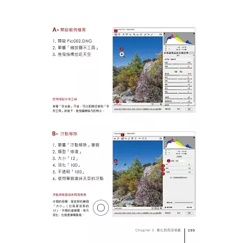 楊比比在Camera Raw中下足了工夫,提供一套完整的修片程序,並研發出獨家的曝光控制程序與色調處理程序;精心設計的範例,陪著所有攝影人,快速掌握攝影後製必備的修片技巧。