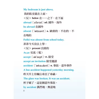 特別使用雙色印刷,豐富編排、層次清晰分明,英文變得易懂、易讀、易學,讓學習英文減少壓力,善用本書工具,讓您比起同學更加事半功倍。