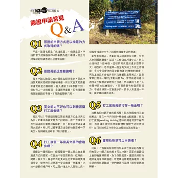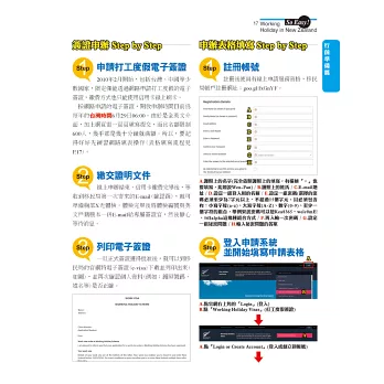 每年網路申請,名額有限,常常在幾十分鐘就被搶光了。全英文的操作介面,除了需要眼明手快,還要一些小撇步及事先熟練流程,就能提升搶籤機率。本書將打工度假簽證的網頁表格,逐頁逐項說明破解。並提供你練習填表的地方、提高填表速度的方法。總之,練熟流程、看懂表格才是王道!