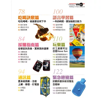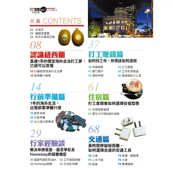 每天稀鬆平常的食衣住行,到了語言不通、人生地不熟的國外,就成為了不得的大事。獨自在外生活打工,到底會面臨哪些問題?本書專治這些疑難雜症,免做無頭蒼蠅。從出發前如何辦證件、搶贏打工名額的撇步、打包行李、在地生活,所有食衣住行育樂,分門別類一一攻略,節省時間、少免走冤枉路。並有就業的工作指南、作者的打工經驗分享。