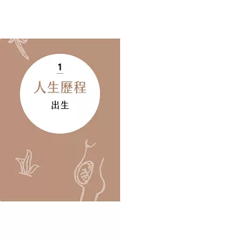 人生歷程:出生、養育、成年、婚姻、老、病、死,以及人生信仰:祭祀鬼神……等相關的字。