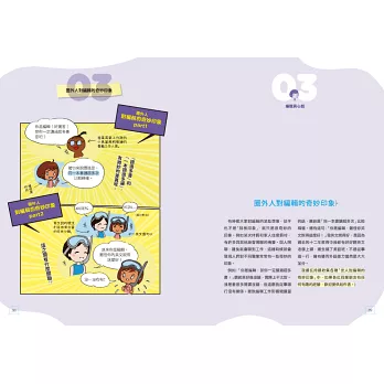 投入出版業以來,我曾被數落為「不合格的編輯」,也曾被讚是「全方位的編輯」;曾被作者在網路上公審,也曾與畫家建立革命情感;曾經做出暢銷書,也曾眼睜睜看著滯銷書被銷毀。在崗位上的這段日子,都掙扎著想從每一個正評與負評中,釐清「合格的編輯」到底要具備哪些條件。學中做,做中學,被罵就回去檢討,被誇獎就坦率道謝。做出了一點心得,就畫成漫畫和大家分享,娛樂大家之餘,也讓想搶下一波福袋的人參考。我的粉絲團和這本書,就是這樣誕生的。