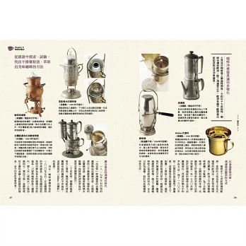 還包括了土耳其咖啡壺、咖啡滲濾壺與愛樂壓的沖煮樂趣,以及運用美式咖啡機、義式濃縮咖啡機、摩卡壺及冰滴、冷萃咖啡壺等等,任何咖啡沖煮器具的原理和密技,你都能學會。