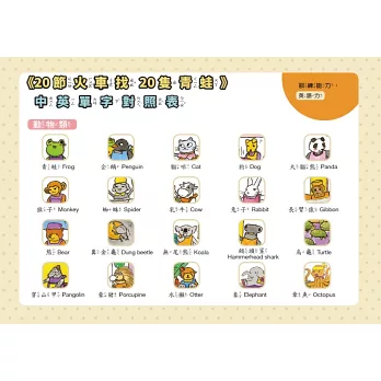 5.英語力:20種動物及園遊會遊戲、食物中英對照,孩子讀繪本的同時也能提升英文能力。
