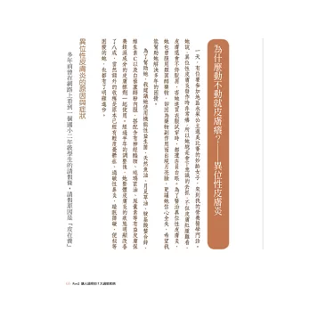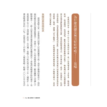 即使如此,許多人卻選擇對過敏置之不理、或只想服用類固醇和抗組織胺來控制症狀,長此以往,鼻過敏極可能演變為氣喘、腦部缺氧,造成記憶力衰退、學習力降低,嚴重時易引發睡眠呼吸中止症,甚至腦中風、心肌梗塞等;氣喘則容易感染流行性感冒,併發肺炎、氣胸,嚴重者呼吸衰竭,進而造成死亡;異位性皮膚炎容易反覆遭到細菌感染,併發皮膚苔癬化,引發睡眠障礙等等。但是,過敏真的無法根治?只能靠吃藥控制症狀嗎?不!從今天起,飽受過敏困擾的你有一新選擇,那就是風行歐美的自然療法、對抗過敏有神奇效果的──「營養醫學」!