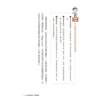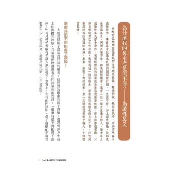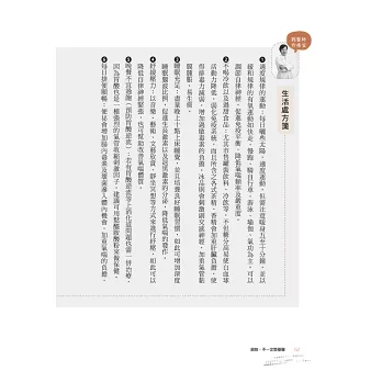 本書除了詳盡介紹國人7大過敏疾病,如過敏性鼻炎、氣喘、異位性皮膚炎、腸漏症、大腸激躁症、結膜炎、慢性食物不耐症等等的成因和症狀,以及如何找出過敏原、過敏原檢測法之外,更難能可貴的是,作者詳盡細膩地說明,如何應用自然醫學的營養療法來根治過敏,例如:「魚油」抗發炎抗過敏,可降低鼻子過敏的反應;「硒酵母」抗氧化,減少體內自由基,可降低氣喘反應;「益生菌」調節腸道免疫系統,改善腸漏症,並協助肝臟排毒等,所有你對根治過敏的疑問,一次給你完整解答!