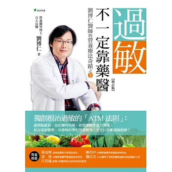 本書是劉博仁醫師繼暢銷書《疾病,不一定要靠「藥」醫》、《營養醫學抗癌奇蹟》之後,再度以營養醫學的專業處方搭配主流醫學,協助過敏患者成功抗敏!書中公開許多作者臨床經驗的本土成功案例,包括鼻過敏、氣喘、異位性皮膚炎、大腸激躁症、結膜炎、藥物過敏、慢性食物不耐症等台灣人常見的七大過敏疾病,為過敏一族打造健康奇蹟!他獨創的ATM抗敏法則,成功幫助許多飽受過敏煎熬的患者,遠離過敏之苦。想要治癒過敏,並且永不復發,你絕不能錯過作者獨家的「ATM」抗敏法則: