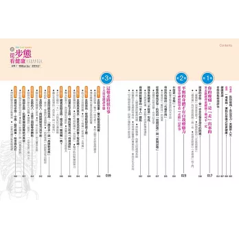 3.列出誤以為只是壞習慣十大錯誤步態,深入剖析可能造成的身體損傷與體態缺陷,終止各項痠痛的惡性循環。