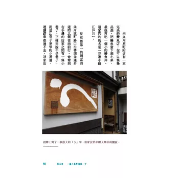 我非常歡迎規劃一人京都遊的讀者參考這些餐廳,適合獨食客的餐廳自然也適合情侶和團體,在規劃京都之旅時歡迎你們列入參考。──柏井壽