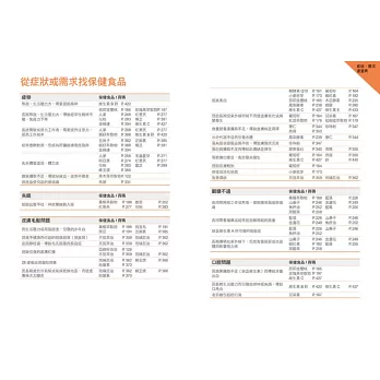 精心編排四種不同的搜尋功能〈需求或症狀速查表〉、〈保健食品複合功效速查表〉、〈按保健食品中文名稱排序〉、〈按保健食品英文名稱排序〉,滿足各種情境或習慣,效率找到所需的知識。
