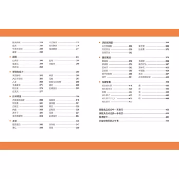 本書以現代人的常見需求,歸納出「益防癌抗癌、降膽固醇、保養關節、抗老化、提升精力、保腸胃、護眼、增強免疫力、控制體重、美容、調節荷爾蒙、器官養護、基礎營養」13大項目,精選100種熱門保健食品,解決各種時期需求。並且針對各年齡層或慢性疾病患者,提出專業建議和具體方法。