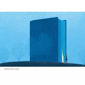 人生的不同階段,不僅可從書中獲取知識,也可透過閱讀得到各種心靈慰藉。偶爾一本書帶來靈感,進而改變人的未來,這說明了書對人們而言,就像生命中不可或缺的光和鹽。本書以多元的角度,用像一首詩般的超現實主義圖畫,含蓄且詩意地展現出書籍帶給人們的靈感和益處。書中每幅圖畫皆以獨特的錯視技法繪製,傳遞給讀者看待人生境遇的不凡角度、深層思索,以及展開自我對話的契機。書中圖像不僅可讓讀者的思緒駐足良久,適時回顧自己的生命歷程,每個翻頁如詩般的短文,隱隱約約夾帶著對於書的隨想,映照出人生的片段和剪影,以夢幻的感覺協助讀者展開想像的翅膀。
