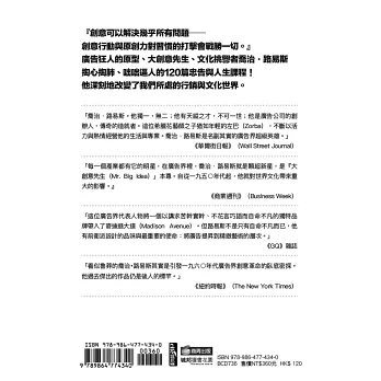 透過充滿熱情、活力、與咄咄逼人的寫作方式,傳奇人物喬治・路易斯向我們說明、示範、且其最終目的是要教導我們去發現自己的創意潛力。他的文字帶我們以新的思維窺見創意生活的奧祕,對於商業、廣告、設計、與視覺藝術等領域創意過程當中的每個階段都能有所啟發。書中的每一課,對創意導向產業裡的每一個人來說是興奮劑、也可能是改變人生的契機;對年輕的創業家而言,這也是品牌行銷與銷售藝術的入門書。